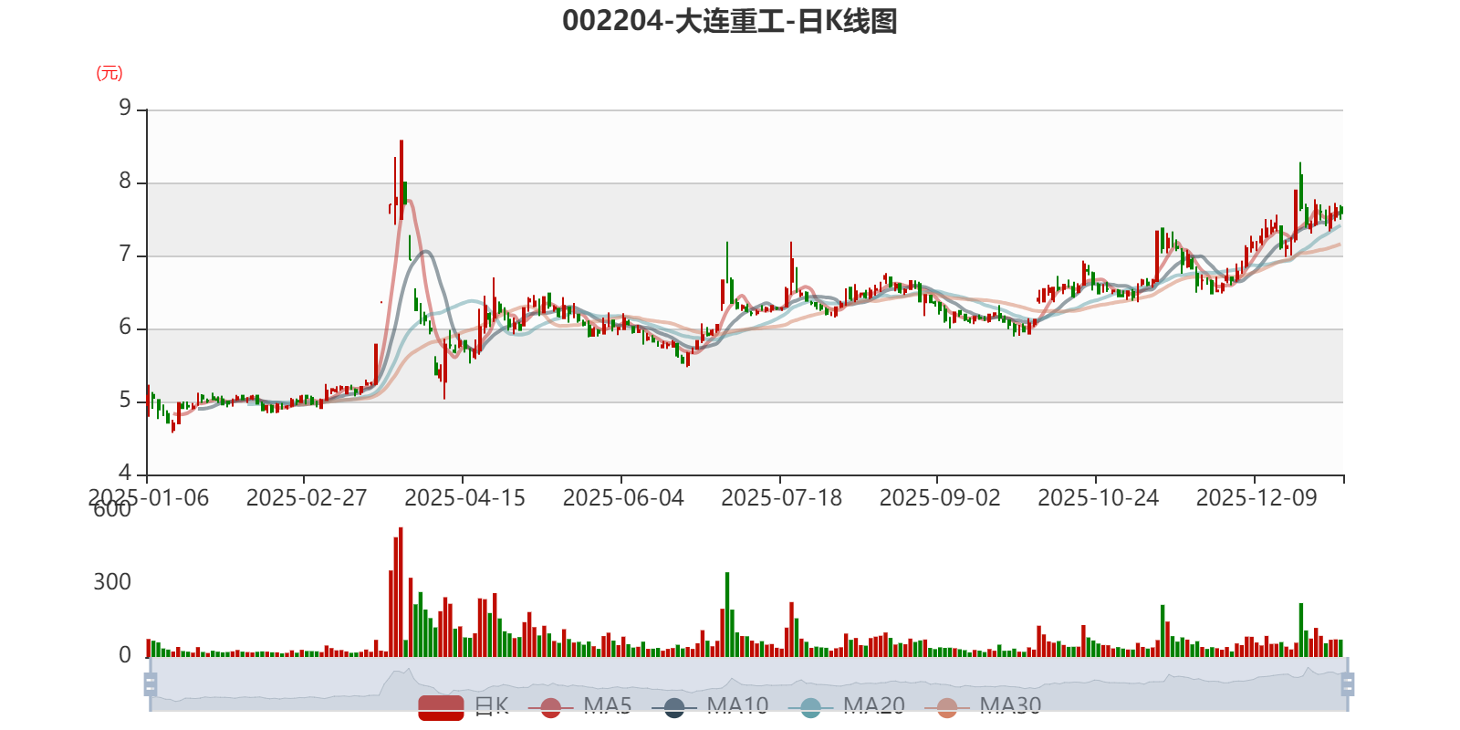 资料显示,公司主要从事物料搬运设备、冶金设备、新能源设备、传动与控制系统、船用设备等领域的大型成套设备及核心零部件的开发、研制和销售,为冶金、港口、能源、矿山、工程、交通、造船等国民经济基础产业提供大型高端装备和智能服务解决方案。