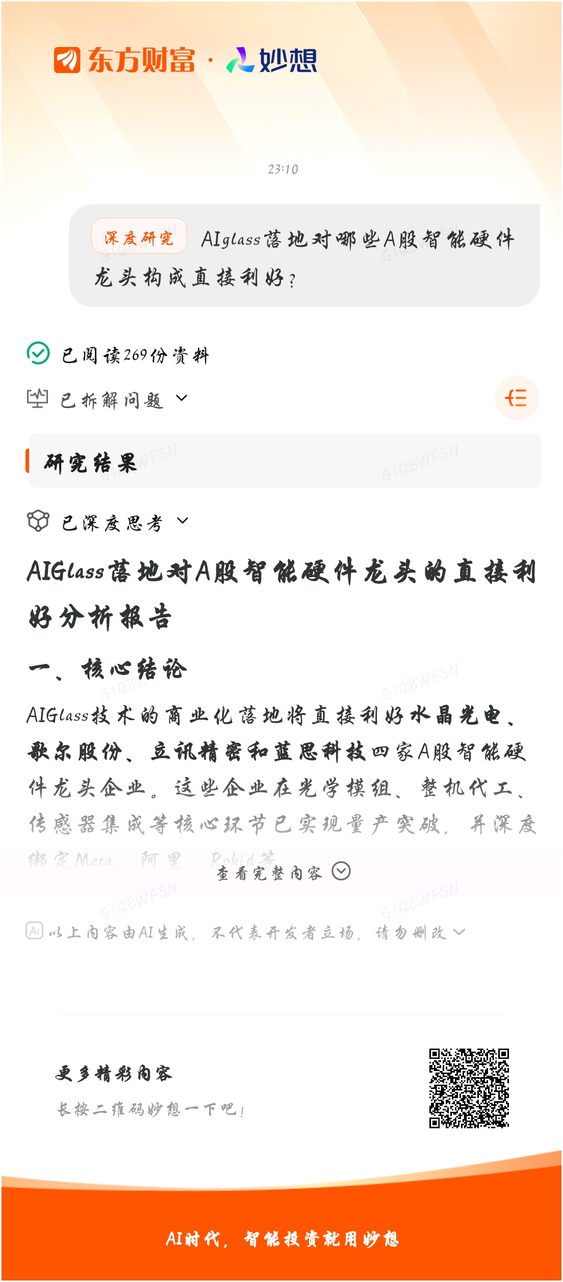 #@妙想,你怎么看?# 妙想一下:AIglass落地对哪些A股智能硬件龙头构成直接利好?