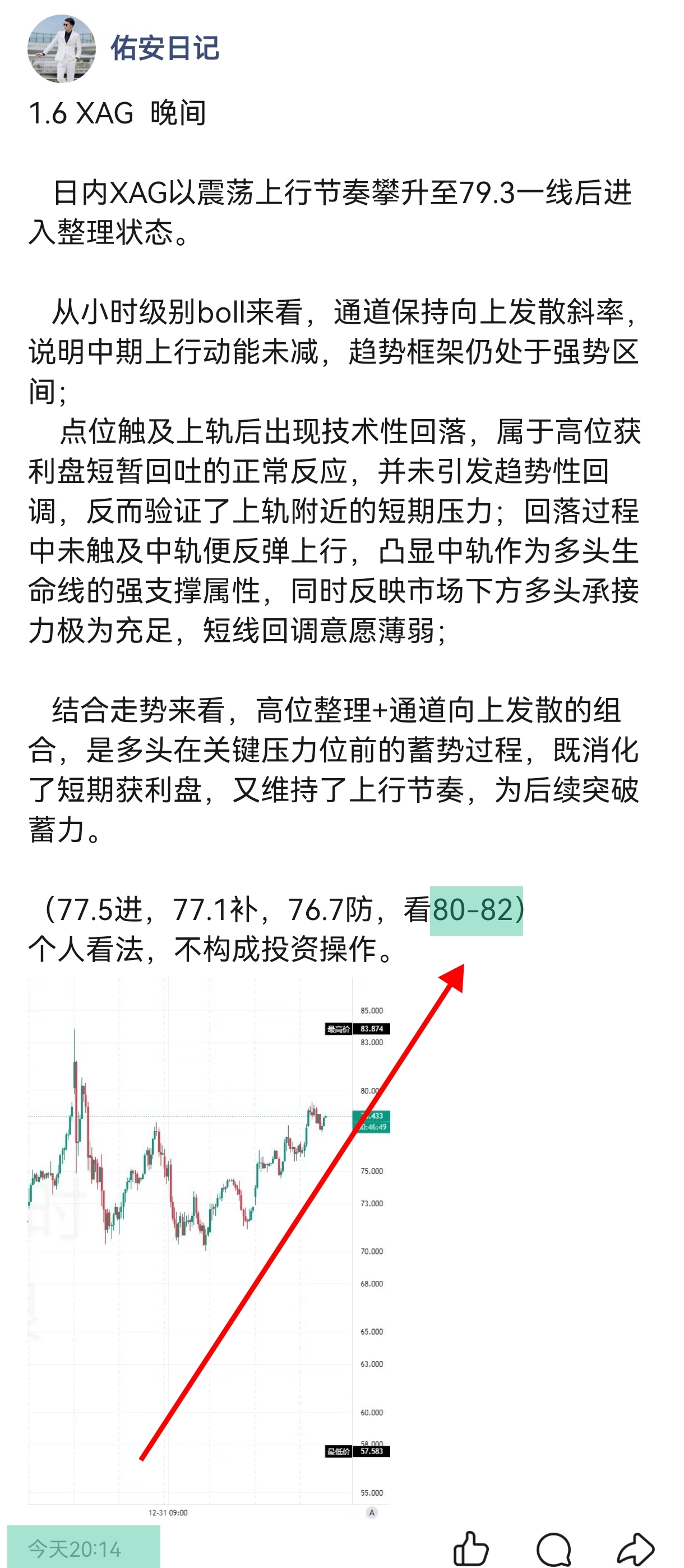 晚间XAG目标点位完美兑现,航情依托中轨强势上攻,最高触及80,直接抵达初始目标位,这波多头节奏你有没有跟上?