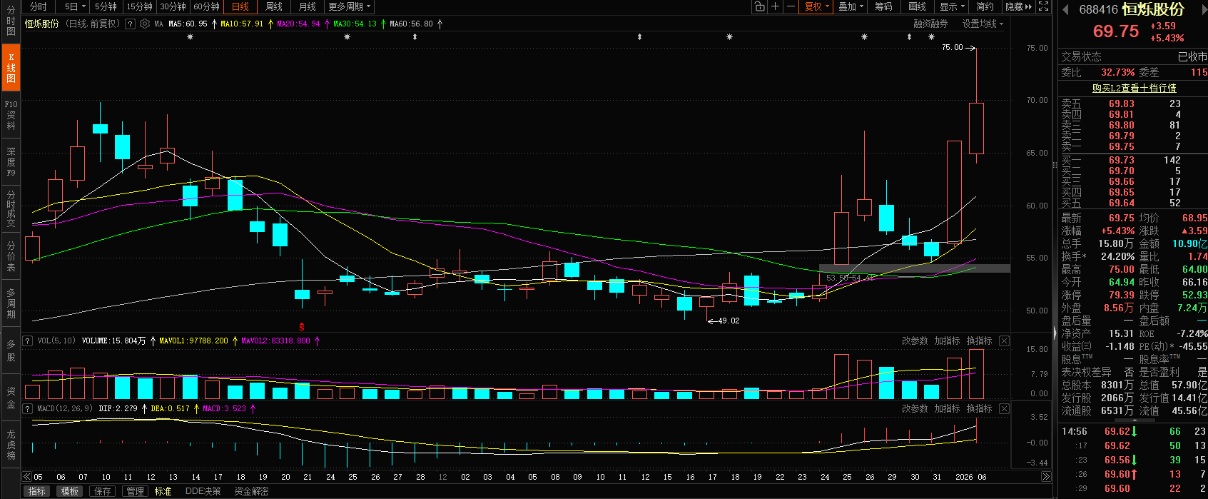 这票还是得实时盯紧盘面分时变化,只要分时出现冲68的压力位且出现回调迹象直接调仓换票。若是开盘直接跌破66的价格就止盈离场。