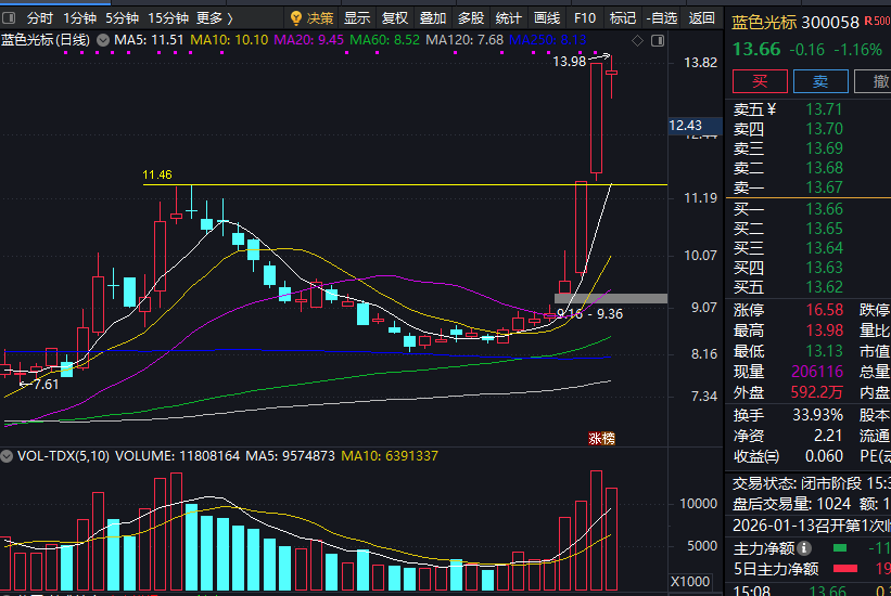 指数十三阳线,马年行情尽显龙马精神。指数之前连续4天承压在3973点,本以为要调整一下或者盘中震荡一下在上,昨天是直接跳空站上3973压力位,今天再次创新高,当前不盲目看空,把握好春季行情。这一波看似逼空,实则是在操盘队的计划当中,如无意外情况,目标4400点左右。节前就反复强调的证券板块,这二天终于发力,带动量能攀升,不过证券板块只适合低吸不能追涨。权重搭台,题材唱戏,保险证券稳住大盘,继续围绕热点板块挖掘机会。后续只要成交易量保持在2.5万亿上方即可,温和放量,一旦突破3万亿的成交量,短期则要注意做T。