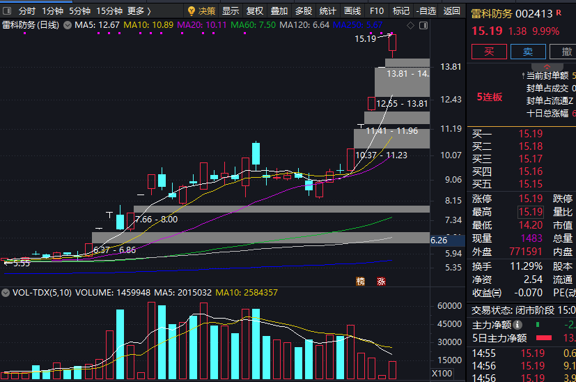 雷科防务:商业航天+军工+6G+存储芯片+无人驾驶等题材,连板持股,反之兑现。航天科工旗下公司,深厚的军工电子与信息技术背景。专注于雷达系统、卫星应用、智能控制、安全存储等业务,产品广泛应用于国防与民用领域,技术壁垒较高,在军用雷达配套和卫星遥感地面处理等领域占据重要市场地位。公司当前涉及的热门题材主要包括低空经济、商业航天、卫星互联网及军工信息化。