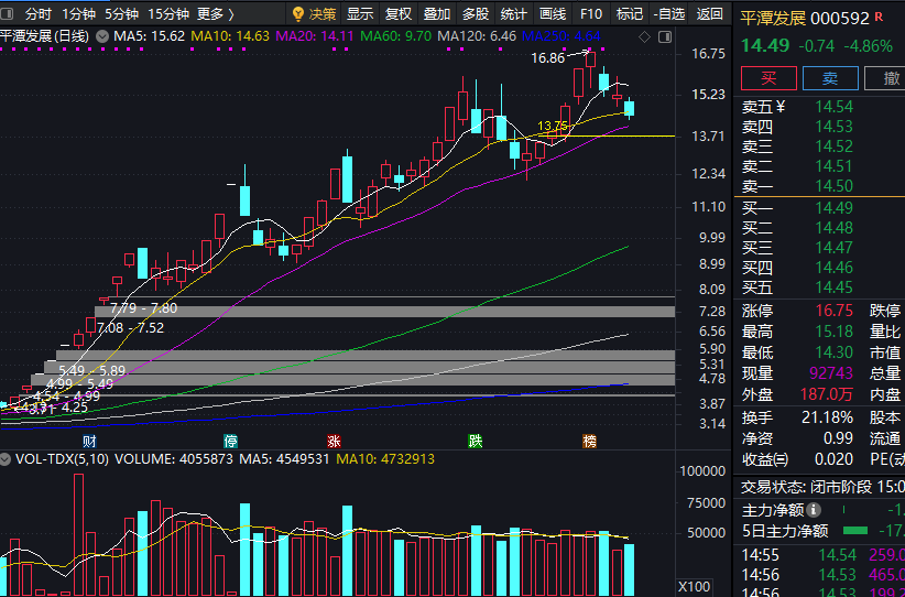 平潭发展:大趋势还没走坏,今天加仓了5000股。作为国Z背景企业,扎根平潭综合实验区(对台前沿),业务涉及养老、旅游、免税、地产、新材料、赛马(马年生肖)等多重题材;近期持续大涨主要还是受益福建板块的热度与平潭岛本身的特殊区域限制,平潭是对台最近的地方,未来将会有更多的以展机遇。
