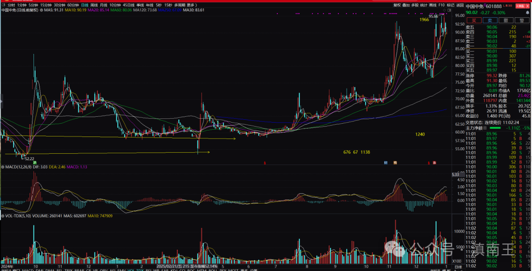 日线技术比较清楚,52见底,60附近筑底,最终起来到92附近出现压力,这个位置,如果震荡后,还会继续往上,当然,也可能形成双顶然后调整,这里可以参考2024年11月调整的形态!