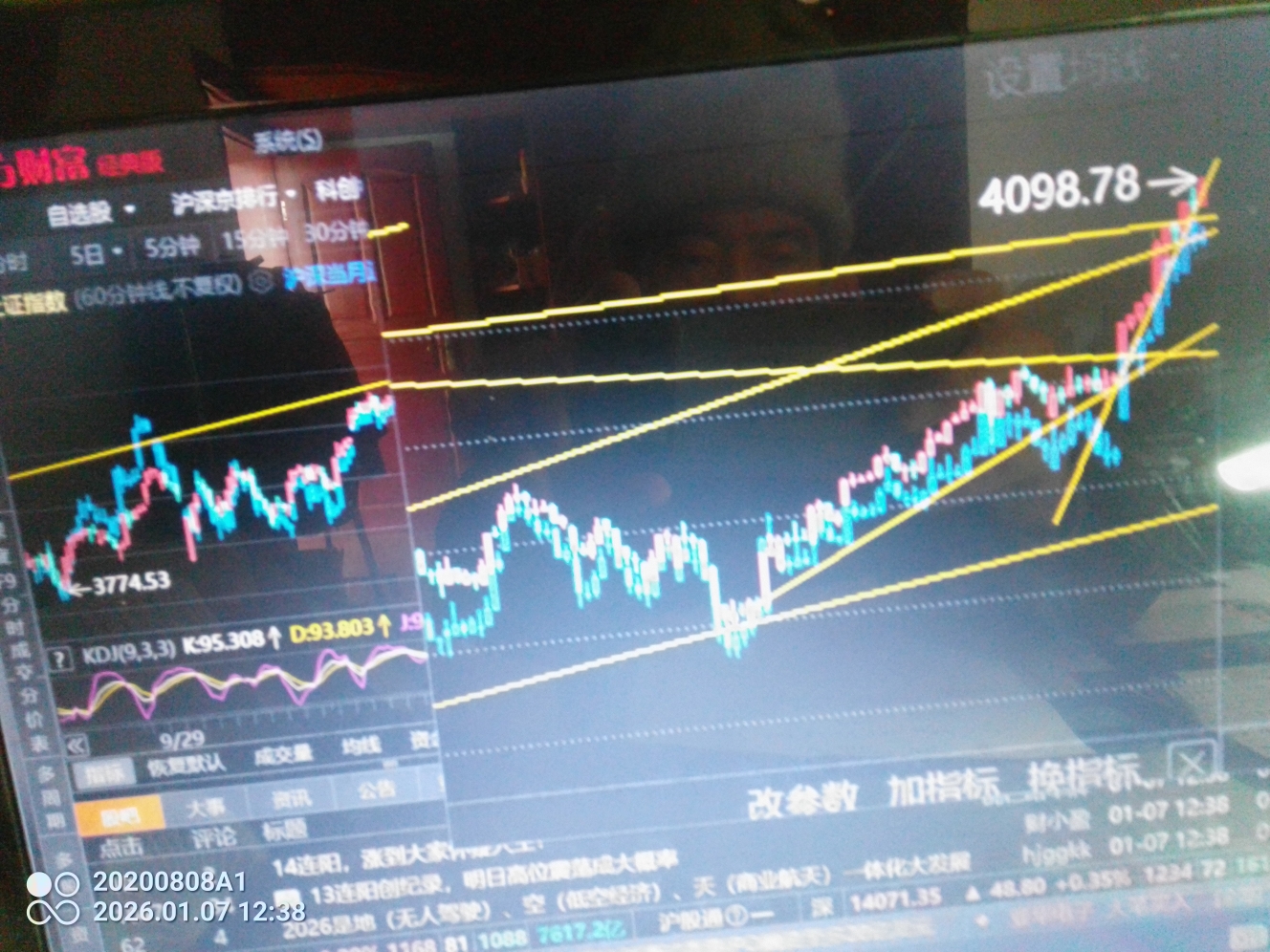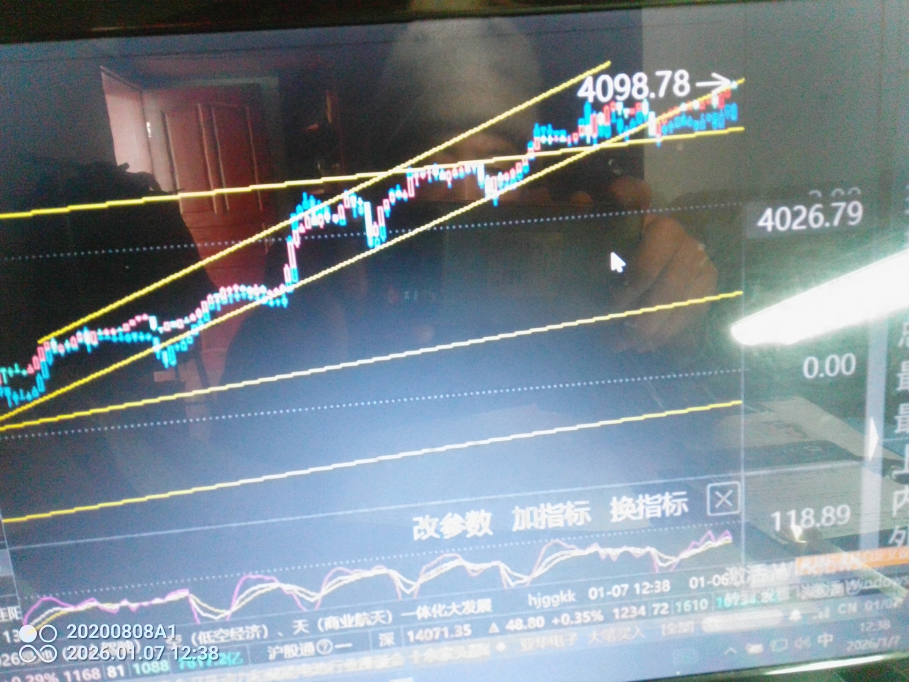 1月7日午间股市讨论:从K线来看,指数跌破4082点至4076点后,未出现回调而