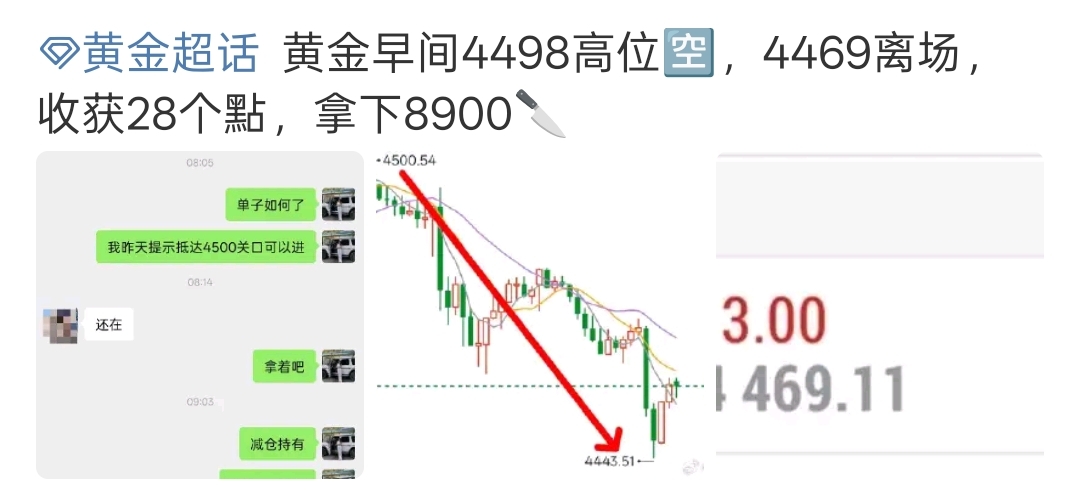 黄金早间4498高位,4469离场,收获28个点,拿下8900