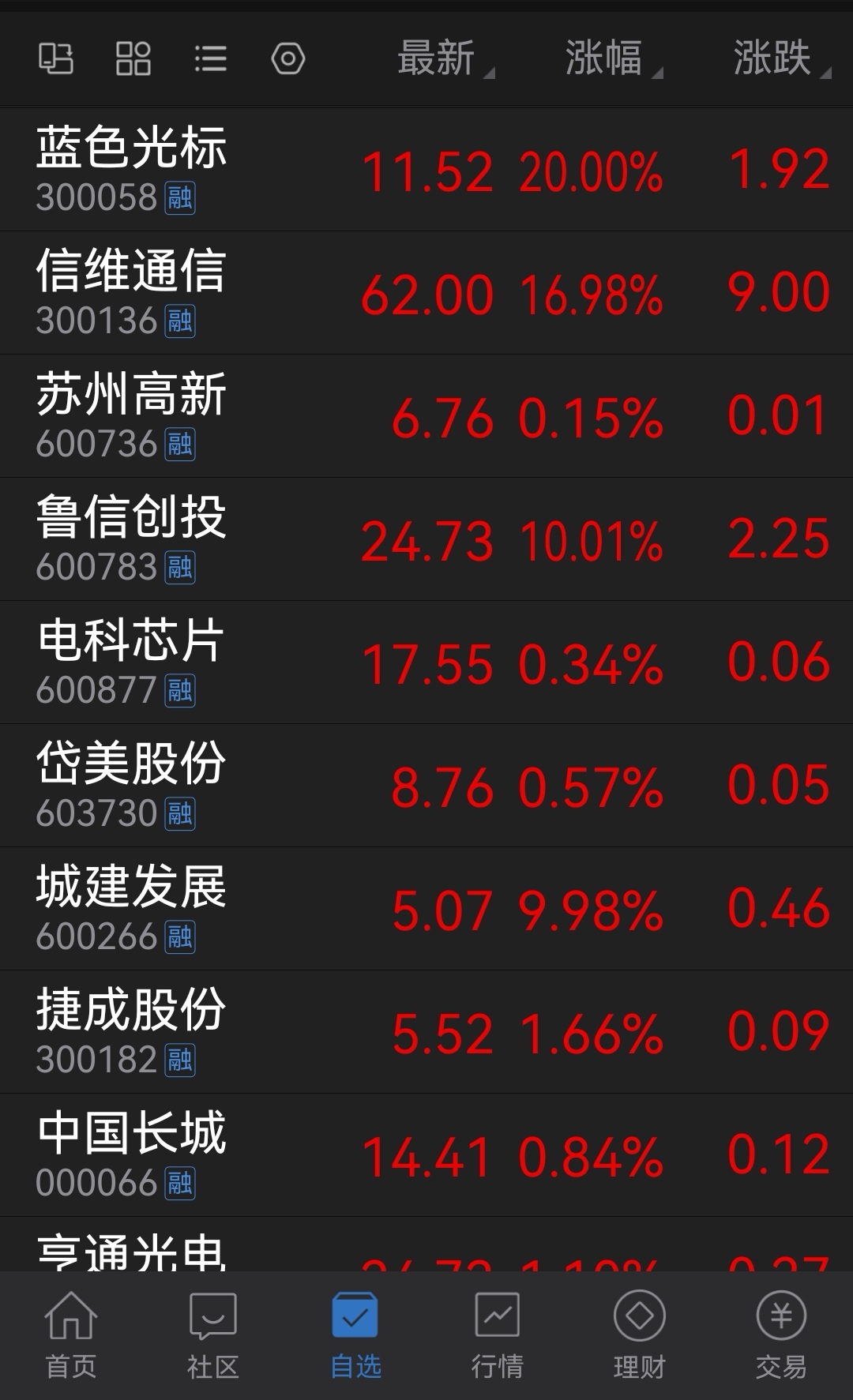 自己在上半年推荐的几个票后面都成为了大牛股,英维克,胜宏科技,神剑股份,旭光电子,不管你守住了哪一个,最后的利润都是丰厚的。下半年推荐的蓝色光标,信维通信,鲁信创投,亨通光电,金风科技,深科技等等都表现不俗,哪怕你建仓的苏州高新与岱美股份也有收获,自己在26号的自选股中也再次提示了以上个股,最近两天都表现非常耀眼,蓝色光标与信维通信再次创了新高,唯独昨天建仓的城建发展没有在平台发出来,只是自己和身边的朋友们吃了独食。以上个股不管你踩准了哪一个,你今年的利润都非常高了,恭喜一路跟着买的朋友们 。