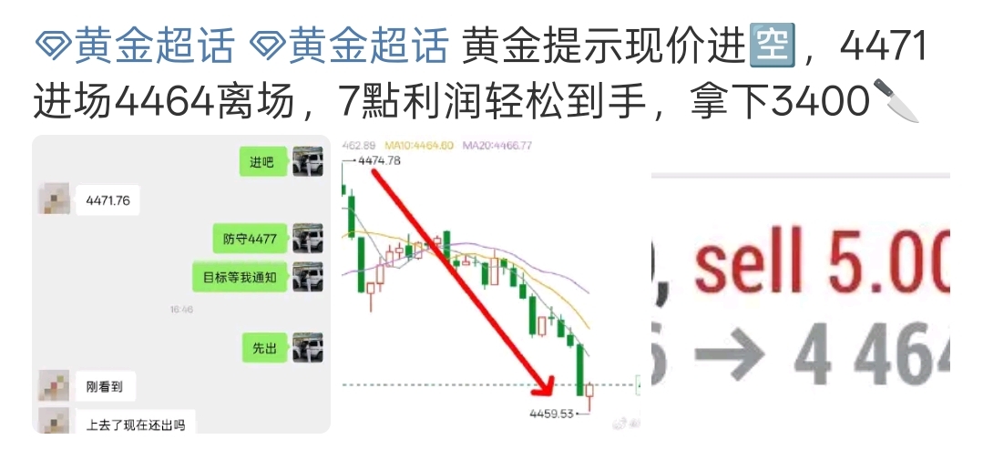 黄金提示现价进,4471进场4464离场,7点利润轻松到手,拿下3400