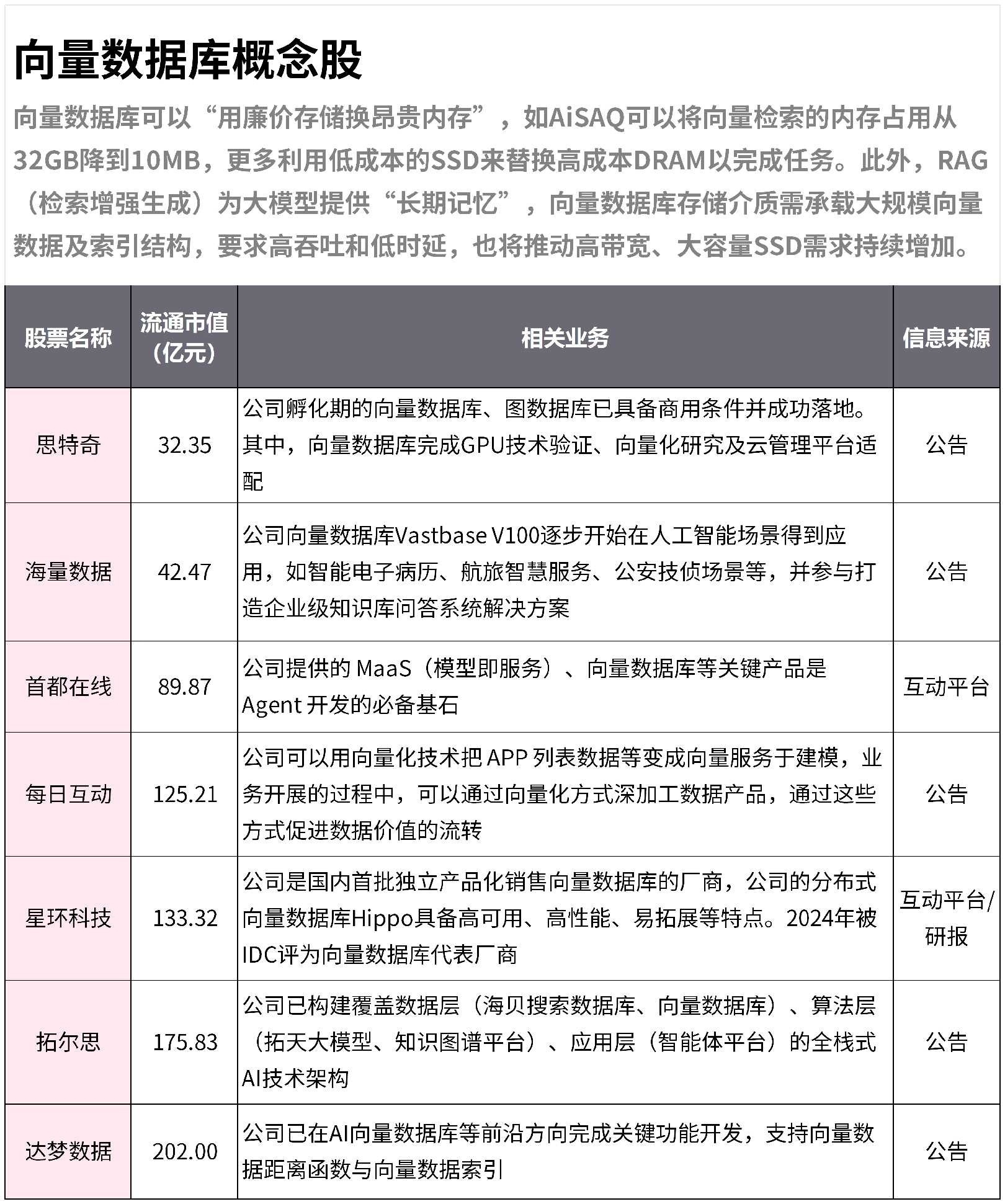 向量数据库概念。炒存储就会炒它。最近几天存储涨疯了。这个值得埋伏。最低看俩倍。