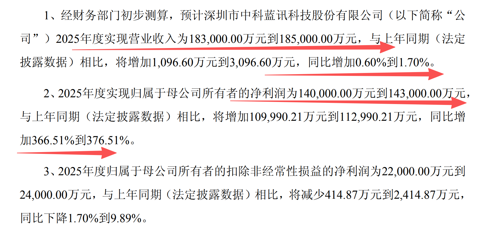 中科蓝讯,利润增366%到376%,利润达到14亿到14.3亿;