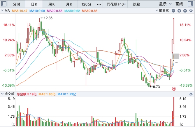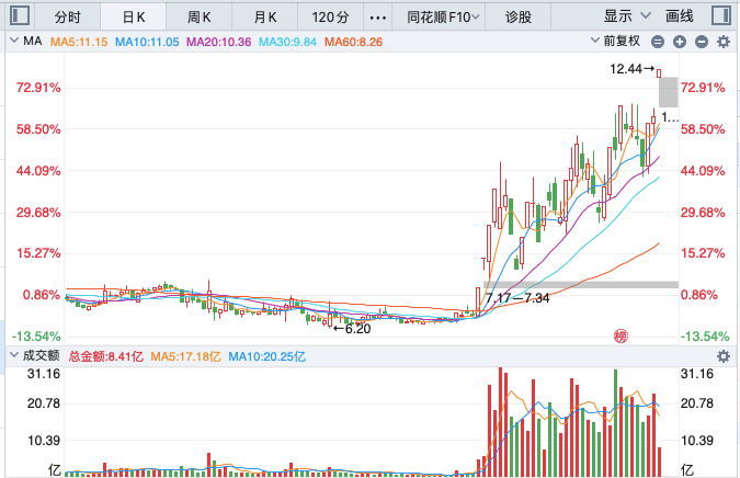 国风新材:近期市场传言国内的光刻机实现了最新的技术性突破,所以在此因素影响之下,昨天的光刻机产业链整体表现强势。目前来看,在相关的T日题材刺激下,现在光刻胶领域有充足的国产替代空间,而公司生产的相关光刻胶可应用于集成电路以及新能源等各大领域。其次则是公司目前也在进行股权重组的方面延伸整个产业链。所以在基本面有个明显改善,而自从底部连板行情后,形成连续的不规则的螺旋式上升的结构形态,反复出现异动,涨停不断创出新高,昨天缩量大幅高开,突破了阶段性高点,走出月线级别突破结构形态,距离前高也仅有一步之遥。所以,如果个股今天能够成功换手板,那么突破历史新高不在话下。$国风新材(SZ000859)$