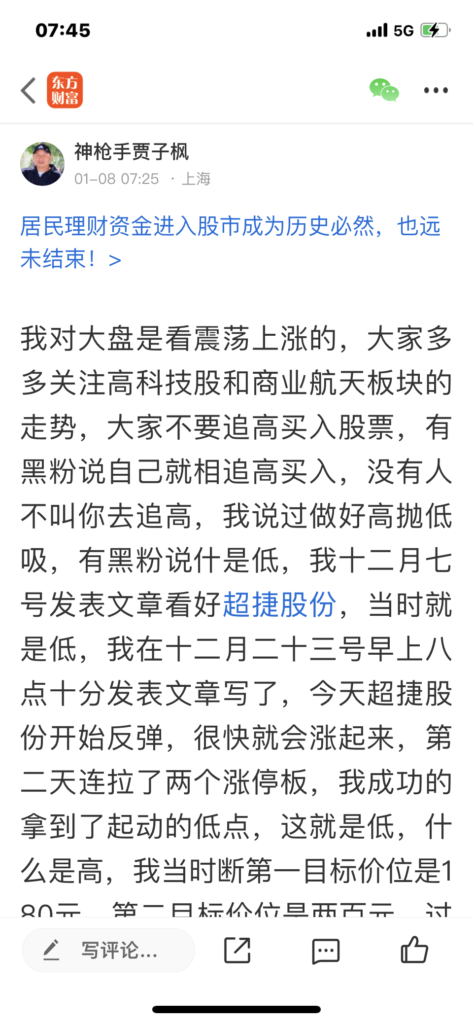 温馨提示: 1.根据《证券法》规定,禁止编造、传播虚假信息或者误导性信息,扰乱证券市场;2.用户在本社区发表的所有资料、言论等仅代表个人观点,与本网站立场无关,不对您构成任何投资建议。用户应基于自己的独立判断,自行决定证券投资并承担相应风险。《东方财富社区管理规定》