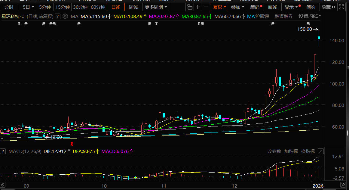 星环科技-U:公司是一家企业级大数据基础软件开发商,围绕数据的集成、存储、治理、建模、分析、挖掘和流通等数据全生命周期提供基础软件及服务,已形成大数据与云基础平台、分布式关系型数据库、数据开发与智能分析工具的软件产品矩阵,支撑客户及合作伙伴开发数据应用系统和业务应用系统,助力客户实现数字化转型。昨天盘中高开,量能放量,不过在收阴线,出现了背离触顶的迹象,不过macd快慢线零轴上方背离向上,盘中要先注意能否继续放量拉涨再说。