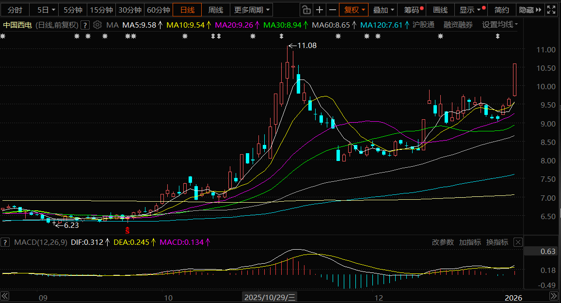 公司经过数十年的技术和市场积累,具备强大的设备研发制造能力,实现了输配电设备全产业链覆盖,形成了品种齐全、形式多样、系列完整的输配电核心设备产品链,培育了一批叫得响的“金字”品牌,拥有国家级专精特新“小巨人”企业6家、省级“专精特新”企业13家。前期11元位置附近拉涨触顶,缩量回调,踩均线支撑企稳以后,昨天10cm涨停收线,再次拉涨,主要注意前期11元位置附近高点突破,以及上方空间的打开占据。