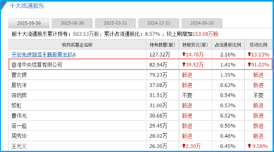 几乎与此同时,市场传来一个令人侧目的信号:代表海外“聪明钱”的香港中央结算有限公司,其持股数量在一个季度内暴增了91%。