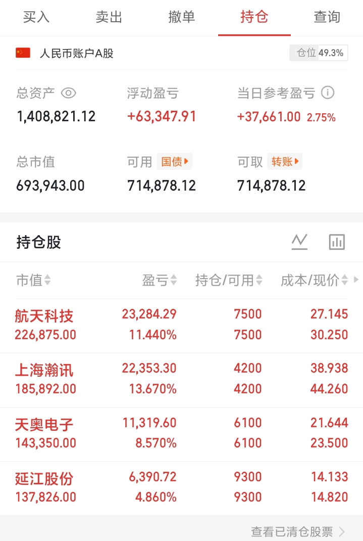 今日记录,继续格局航天科技,天奥电子,上海瀚讯,延江股份继续停牌,期待花开。