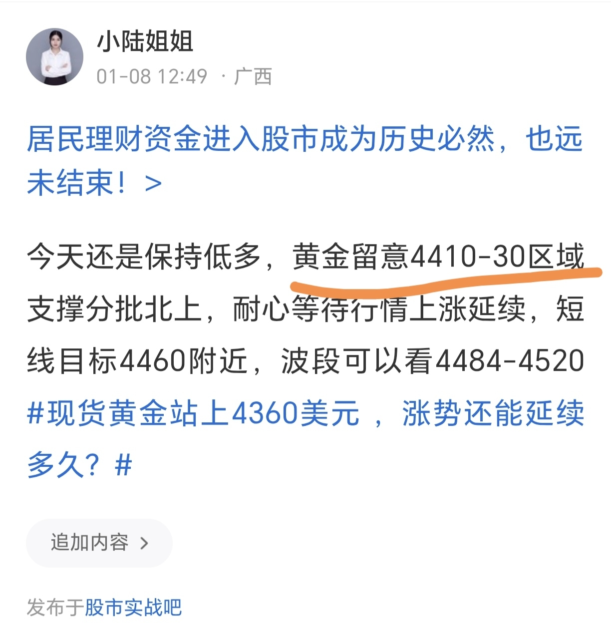 郑重声明:用户在财富号/股吧/博客等社区发表的所有信息(包括但不限于文字、视频、音频、数据及图表)仅代表个人观点,与本网站立场无关,不对您构成任何投资建议,据此操作风险自担。请勿相信代客理财、免费荐股和炒股培训等宣传内容,远离非法证券活动。请勿添加发言用户的手机号码、公众号、微博、微信及QQ等信息,谨防上当受骗!