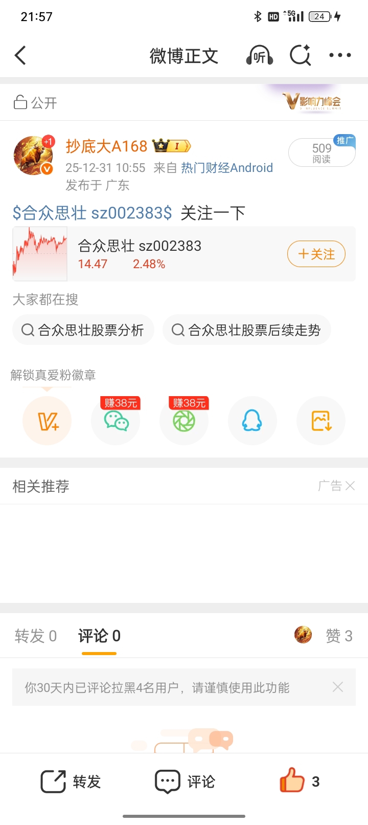 温馨提示: 1.根据《证券法》规定,禁止编造、传播虚假信息或者误导性信息,扰乱证券市场;2.用户在本社区发表的所有资料、言论等仅代表个人观点,与本网站立场无关,不对您构成任何投资建议。用户应基于自己的独立判断,自行决定证券投资并承担相应风险。《东方财富社区管理规定》
