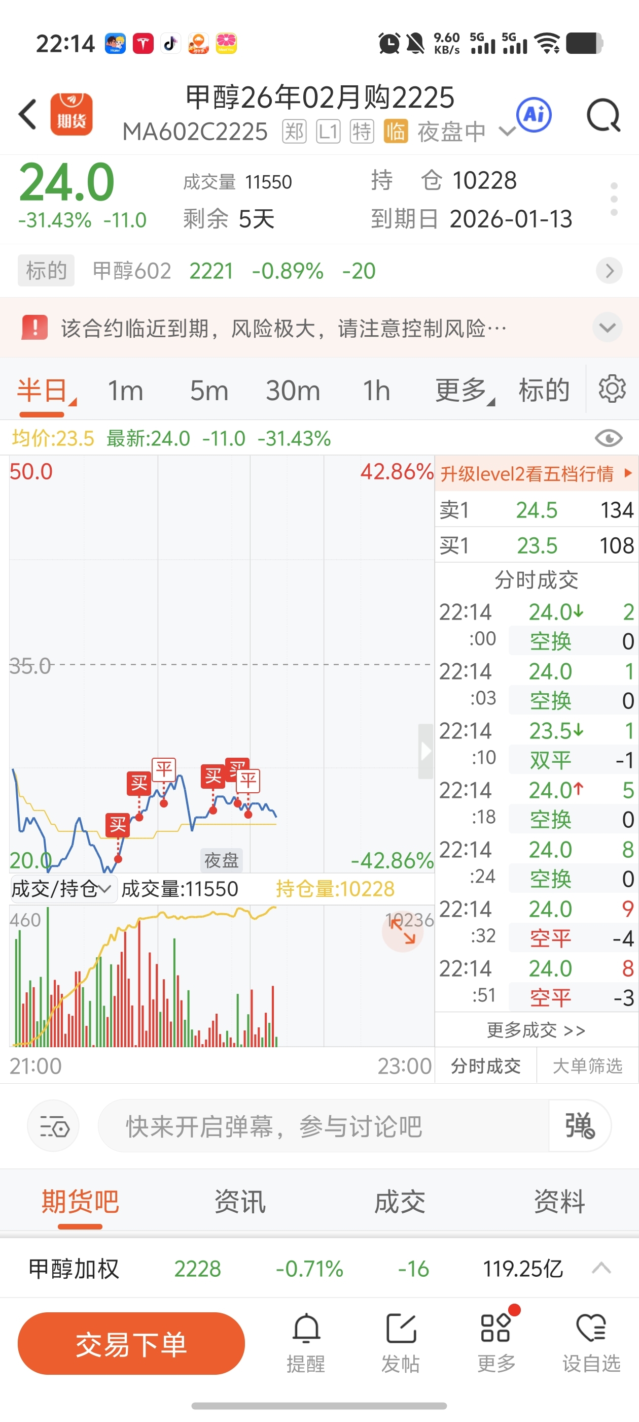 第二处入场,关键位突破不了,上下不能,果断止损,至少不会亏很多!不赚钱没事,机会多的是!