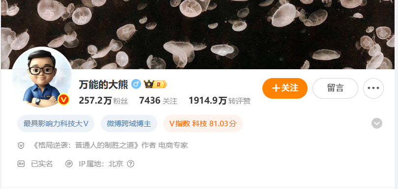 事件导火线是,新年伊始,有数码类博主爆料,一位长期致力于“黑”小米的黑粉头子,微博粉丝200多万的数码大V万能的大熊被传正在与小米公司接洽,洽谈商业合作事宜。