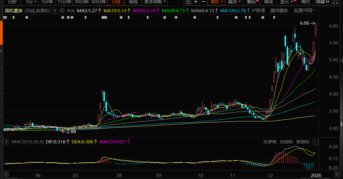 公司是国家重大技术装备制造基地,是世界重大技术装备领域少数具备极限制造能力的企业,柔性制造优势突出,可为航空航天、能源、冶金、石油化工、矿山、交通、汽车等重要行业提供系统的制造与服务,在国民经济建设中发挥着战略性、基础性的重要作用。3.5元位置附近结束底部吸筹以后,均线排序整齐有序,量能放量,快速拉涨往上,昨天在6元位置附近10cm收线以后,盘中主要注意放量连板情况。