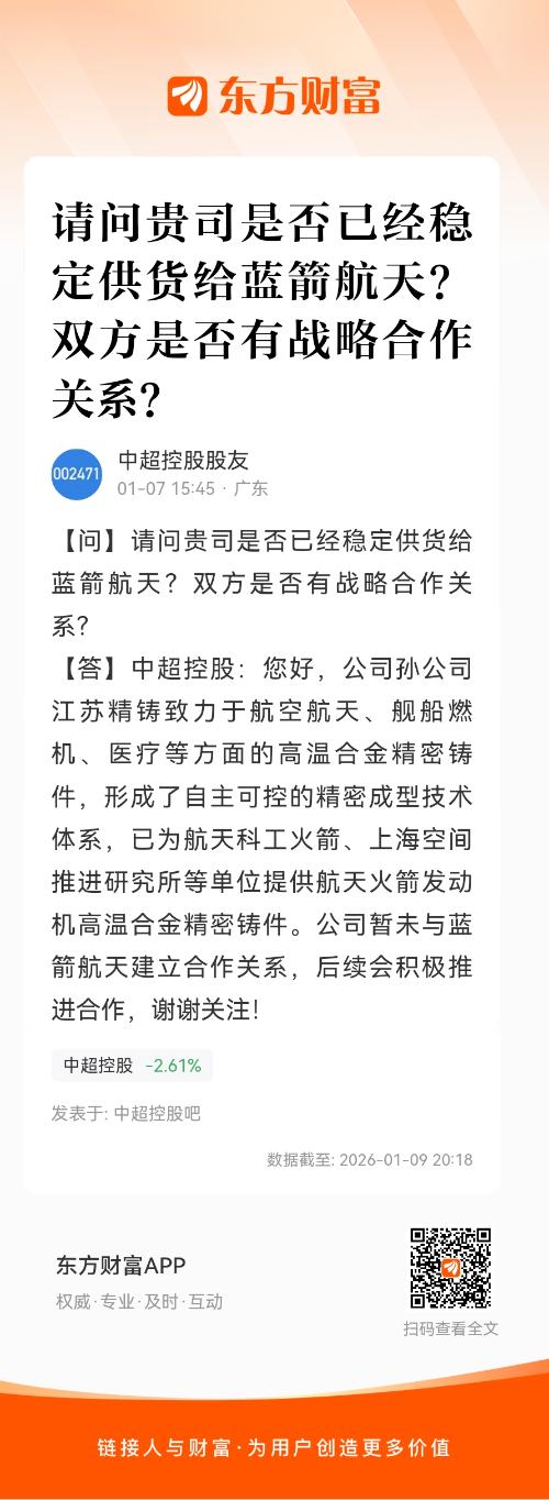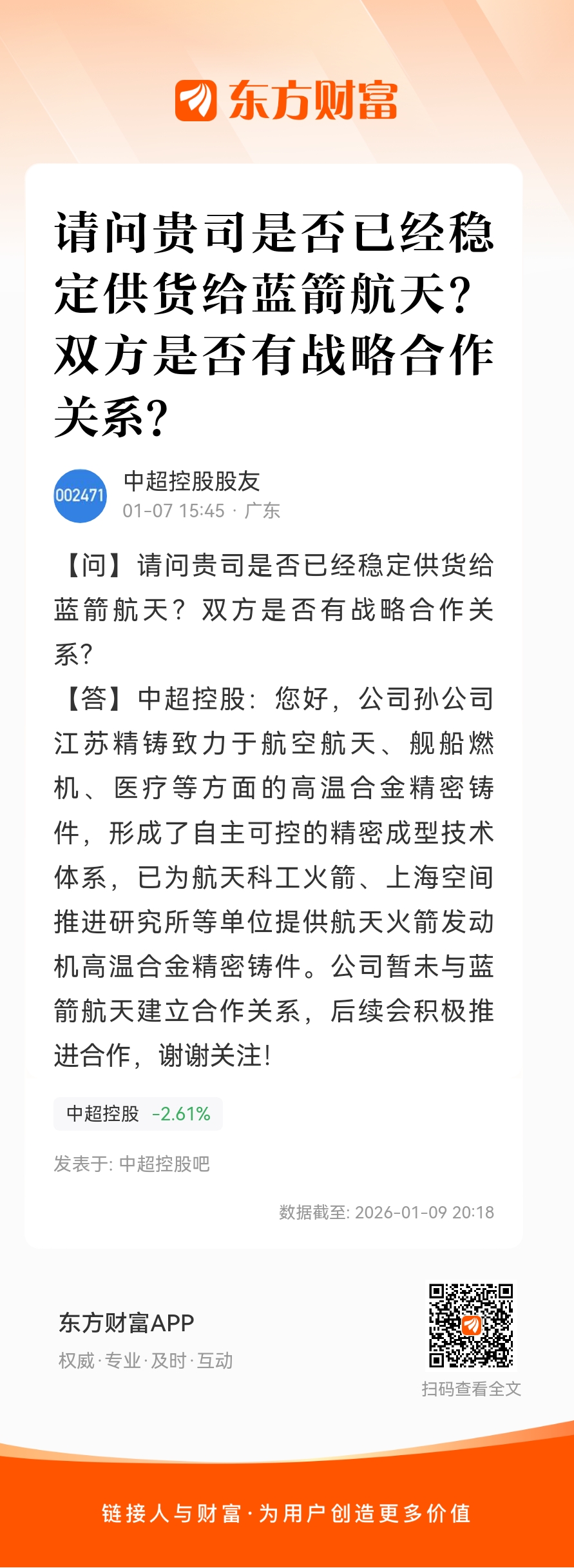 请问贵司是否已经稳定供货给蓝箭航天?双方是否有战略合作关系?