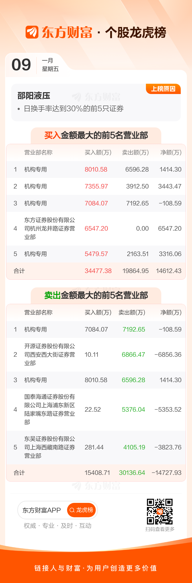 交易所2026年1月9日公布的交易公开信息显示,邵阳液压因成为日换手率达到30%的前5只证券上榜。邵阳液压当日收报58.45元,涨跌幅17.84%,偏离值53.02%,换手率58.67%,成交额23.82亿。