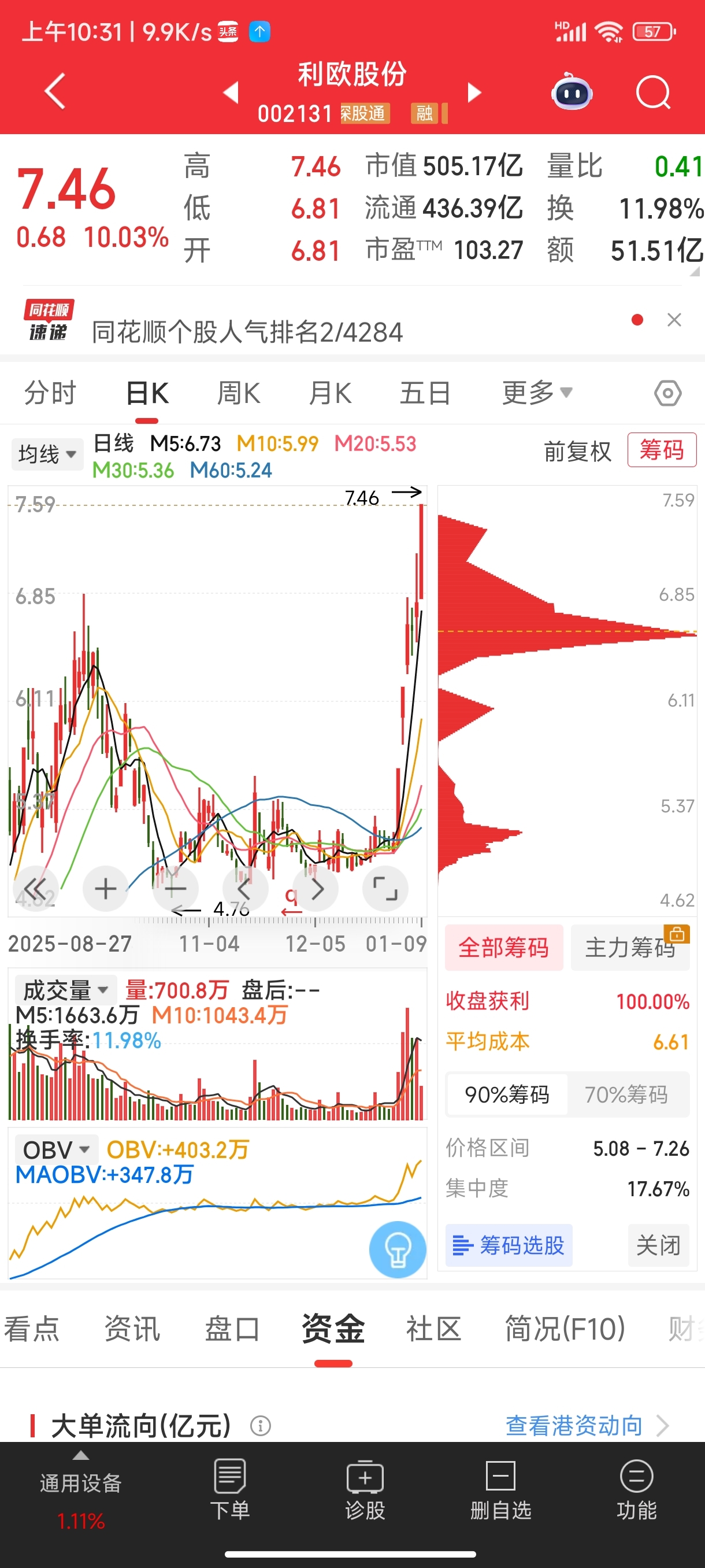 2026.1.10复盘做了一个一日游,小赚几千,从走势上、筹码分布、换手率、成交