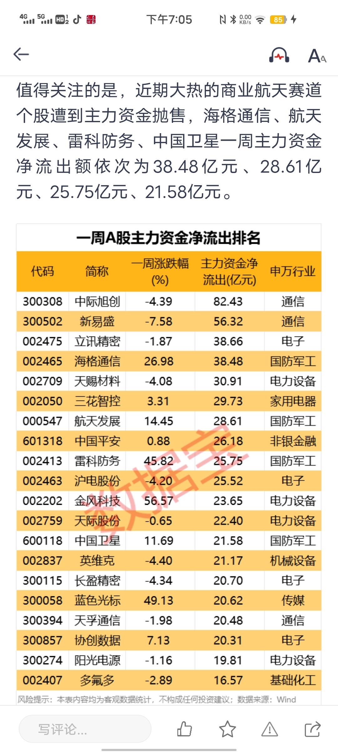 主力净流出排名