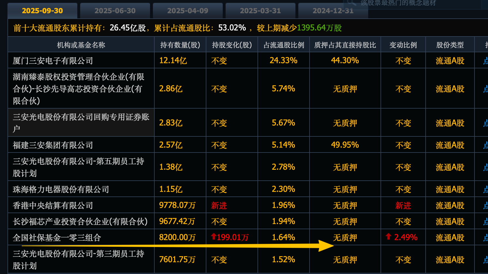 社保基金106组合刚刚加仓到2489万股,位列第5大股东。