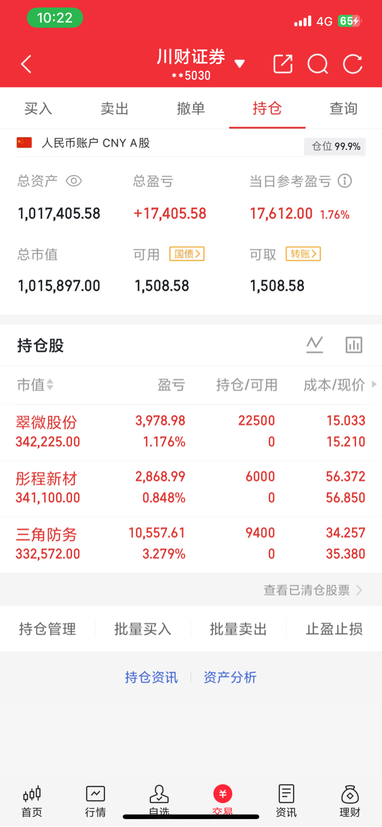 1.12今日笔记介入:翠微股份介入:三角防务介入:彤程新材我将用真实账户记录每一