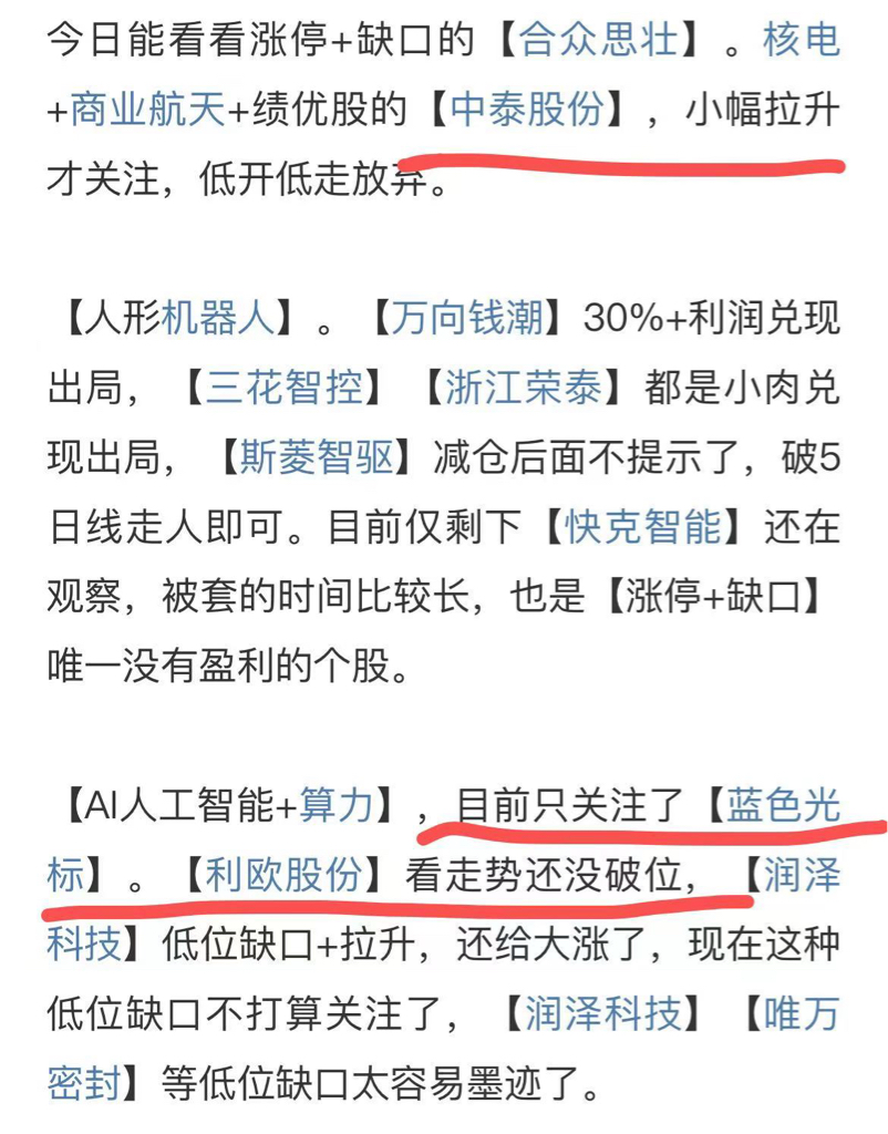 【蓝色光标】,缺口到现在105%的涨幅,【利欧股份】没破位,走出2连板。【中泰股