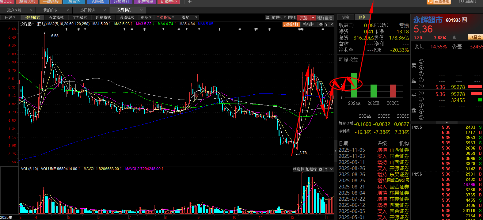 5:今天股票池;放入新票:永辉超市:603933