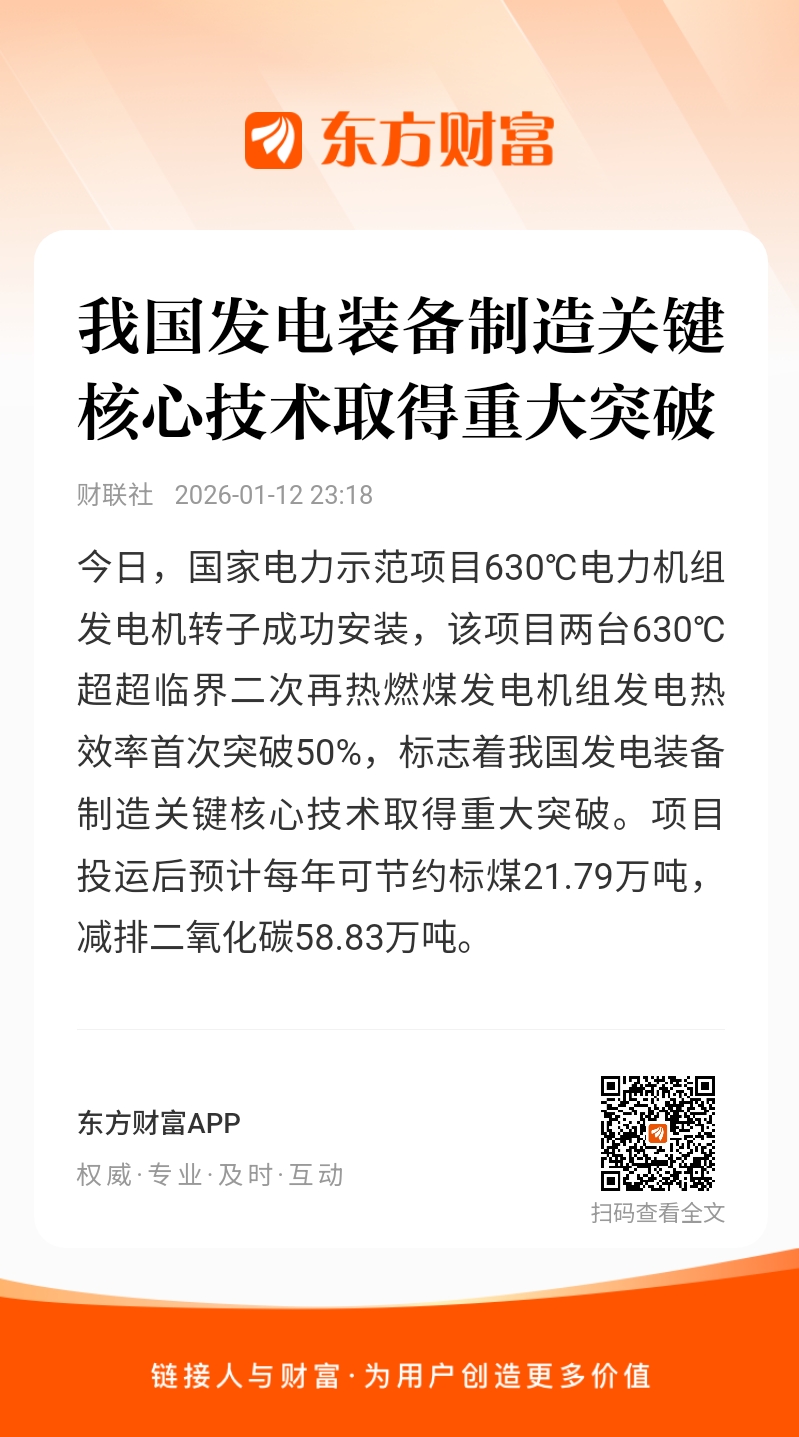 今日,国家电力示范项目630℃电力机组发电机转子成功安装,该项目两台630℃超超临界二次再热燃煤发电机组发电热效率首次突破50%,标志着我国发电装备制造关键核心技术取得重大突破。项目投运后预计每年可节约标煤21.79万吨,减排二氧化碳58.83万吨。