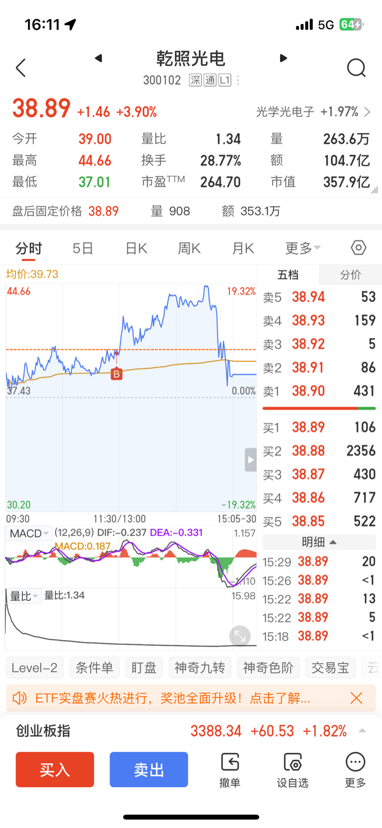 航宇微:利润足够大了,才进场没几天已经有30多个点且仓位重,均价24.15减了一半