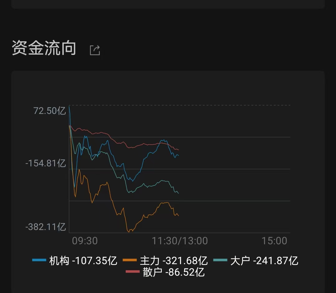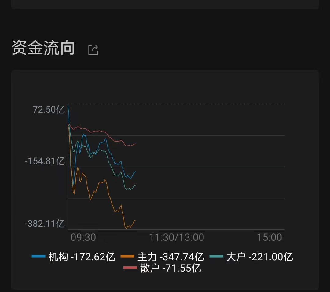 ***对比上午收盘,机构由-172.6亿的流出,到收盘的-98.41亿,而其他资金全天却维持震荡下行的流出达到1356亿(不排除其中有机构部分打散的筹码)。3.7万亿的成交量,抛出的筹码都哪儿去了?