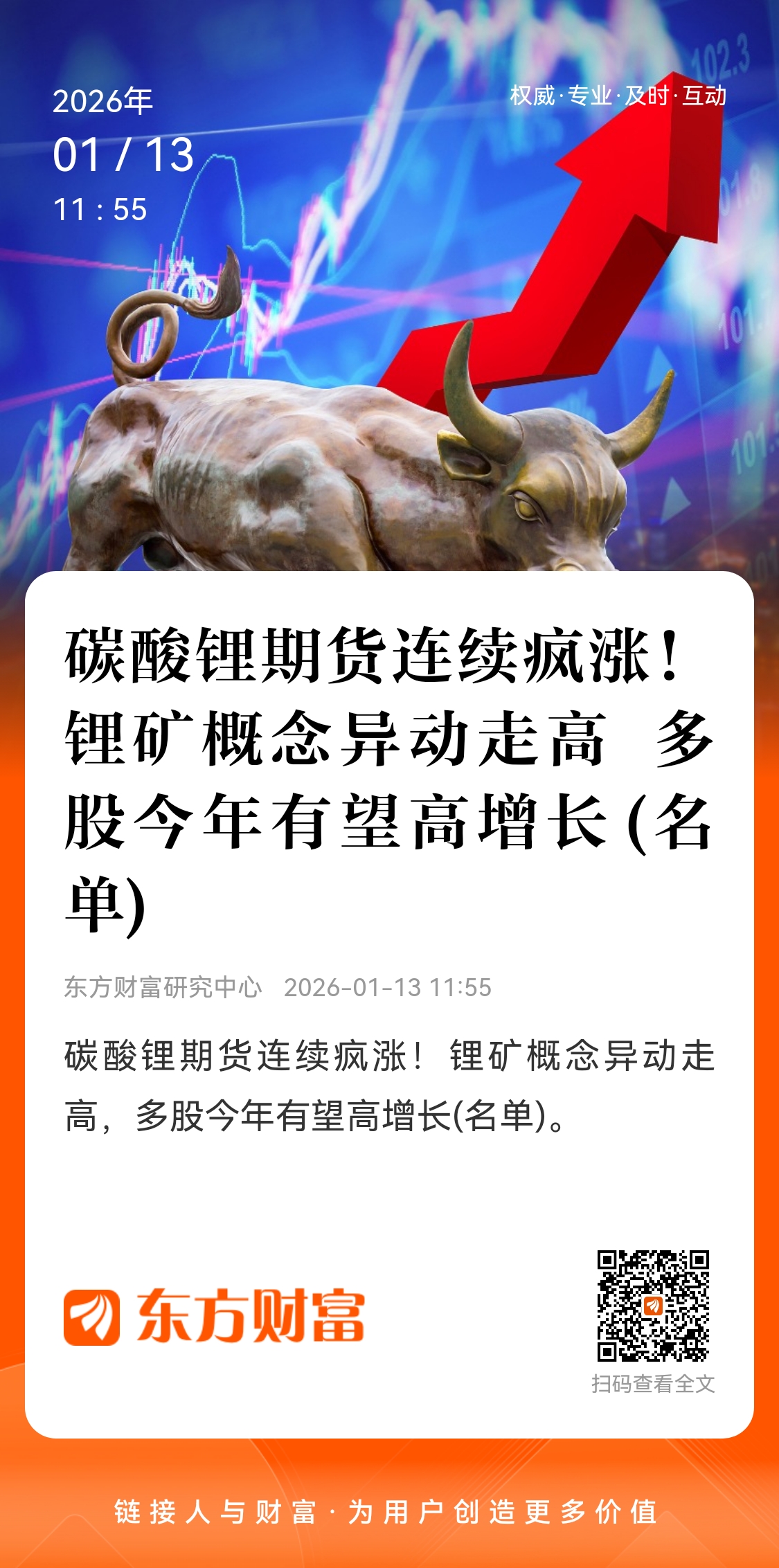 碳酸锂期货盘中再度涨停 锂矿概念异动拉升