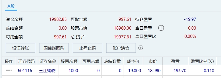 第一笔交易,满仓打板三江购物。