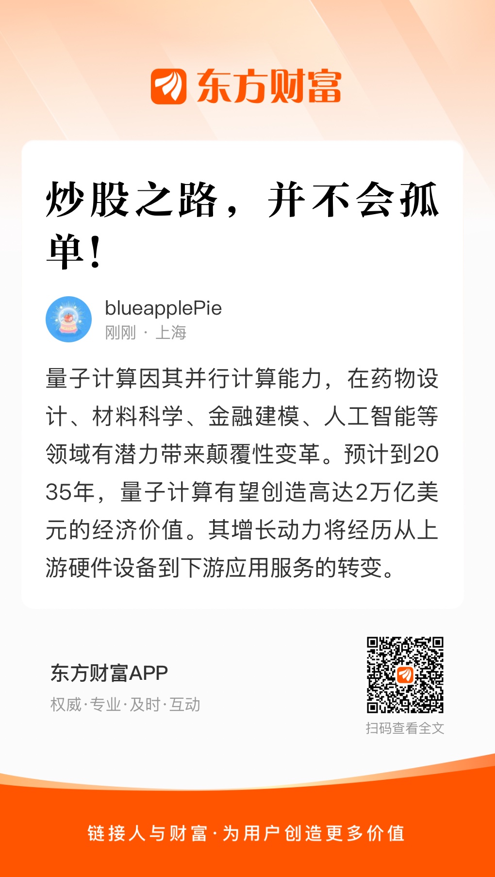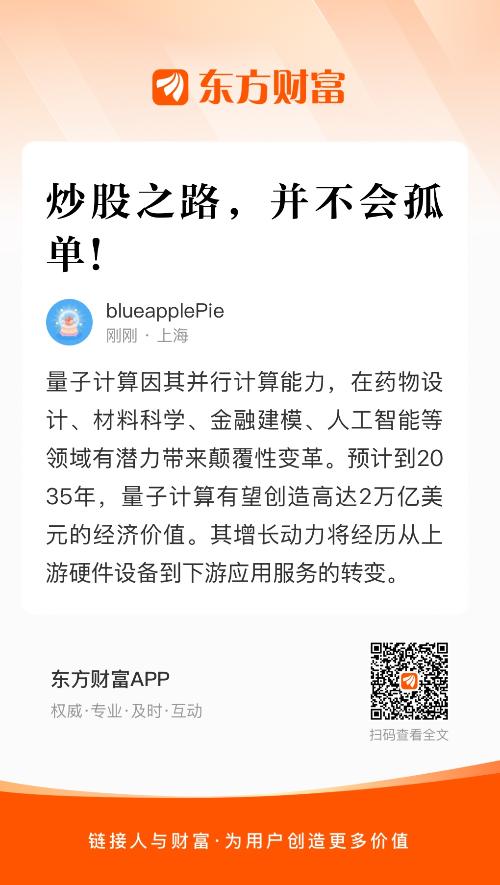量子计算因其并行计算能力,在药物设计、材料科学、金融建模、人工智能等领域有潜力带来颠覆性变革。预计到2035年,量子计算有望创造高达2万亿美元的经济价值。其增长动力将经历从上游硬件设备到下游应用服务的转变。