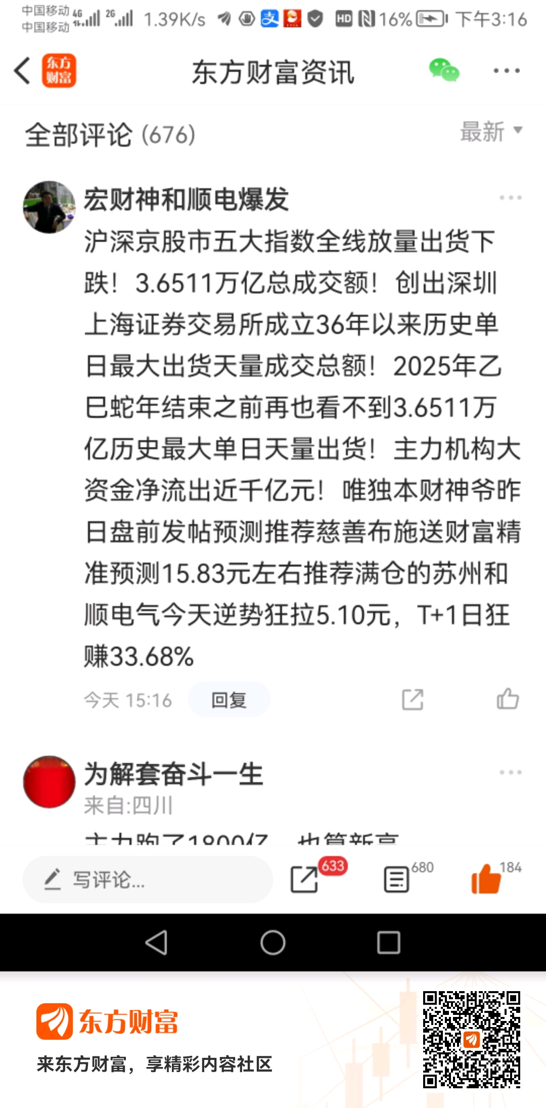 温馨提示: 1.根据《证券法》规定,禁止编造、传播虚假信息或者误导性信息,扰乱证券市场;2.用户在本社区发表的所有资料、言论等仅代表个人观点,与本网站立场无关,不对您构成任何投资建议。用户应基于自己的独立判断,自行决定证券投资并承担相应风险。《东方财富社区管理规定》