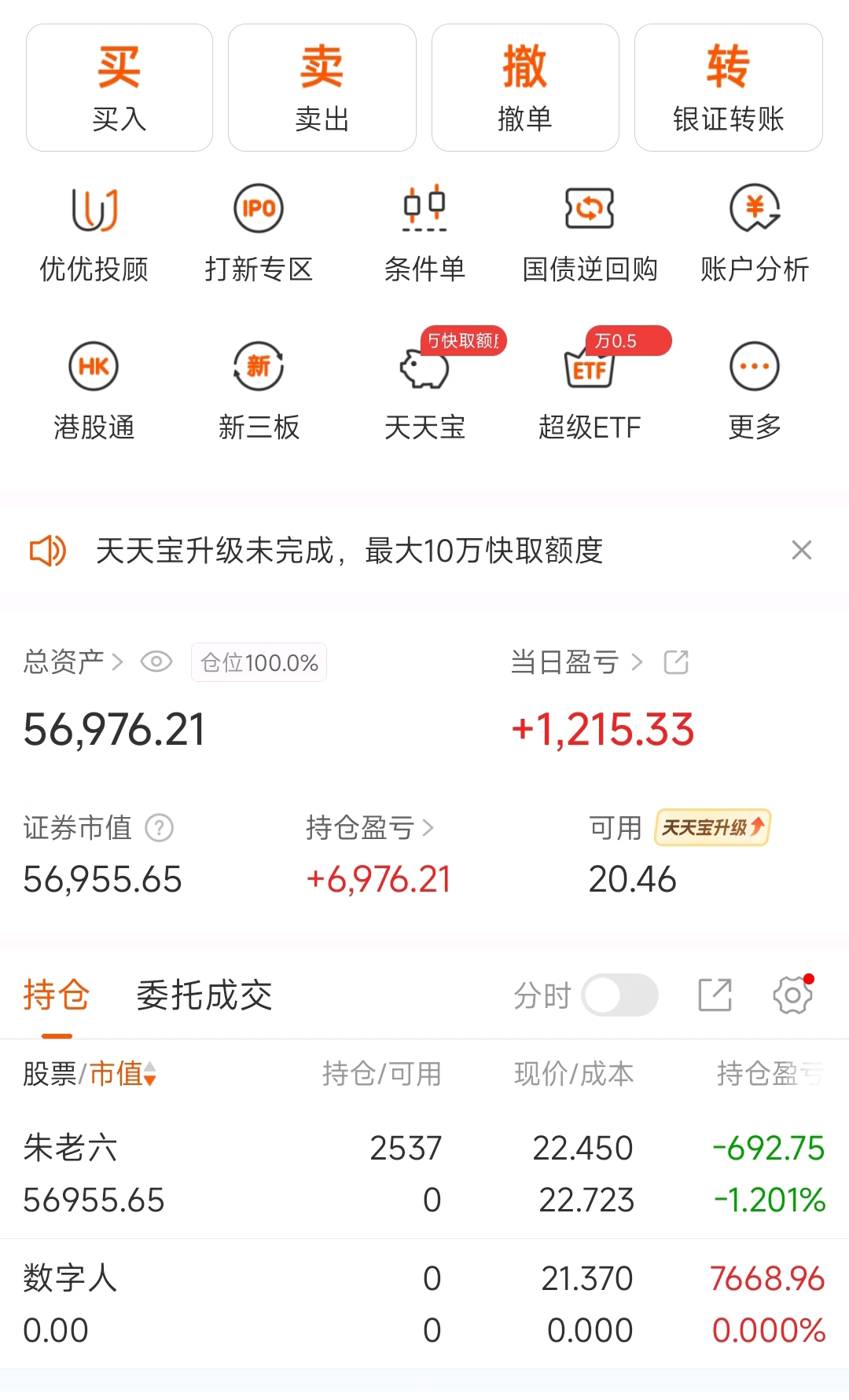 第一天起始:5万盈亏:+5760.88第二天起始:5万盈亏:+1215.33格局