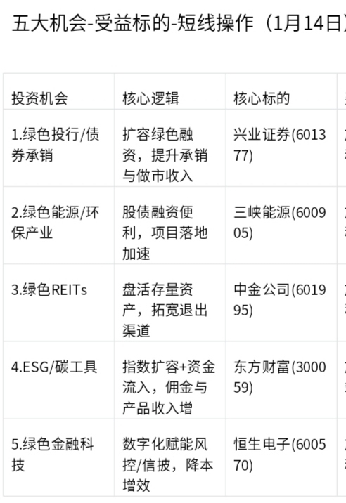 1月下旬有政策/数据催化(如绿色债券发行、ESG资金净流入)的标的。