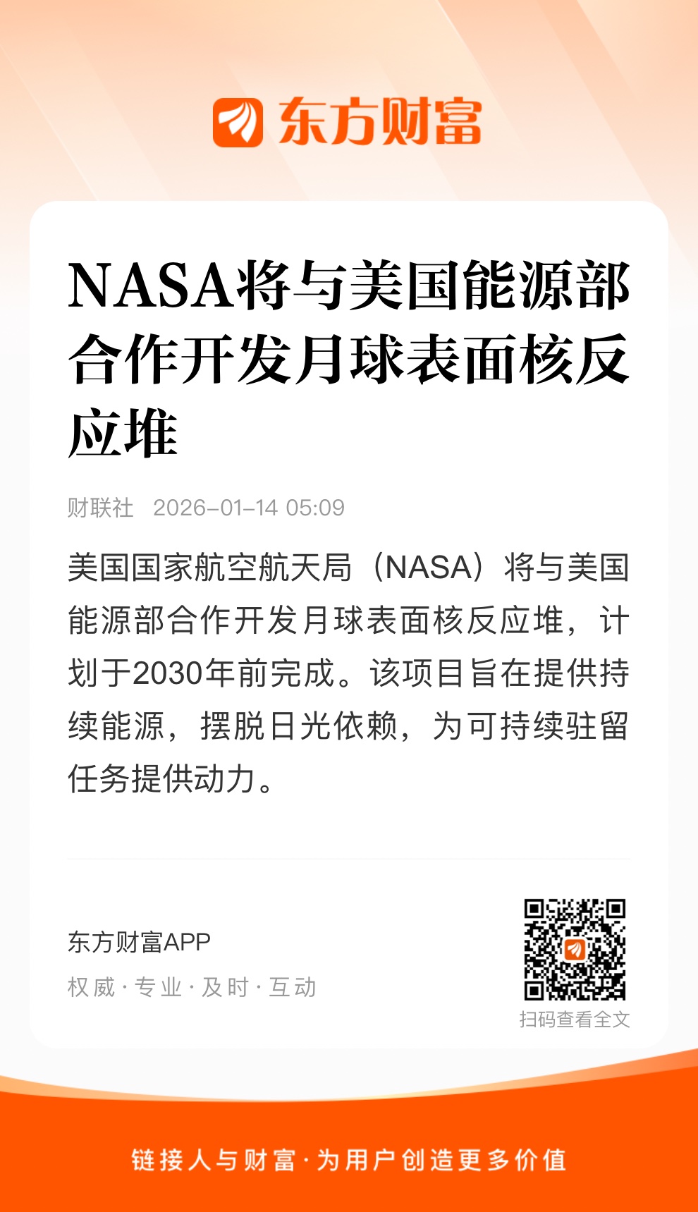 美国国家航空航天局(NASA)将与美国能源部合作开发月球表面核反应堆,计划于2030年前完成。该项目旨在提供持续能源,摆脱日光依赖,为可持续驻留任务提供动力。