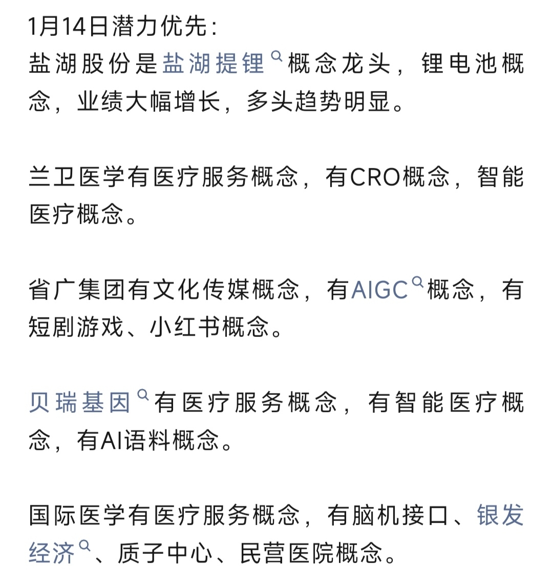 板块方面,医疗服务、文化传媒、锂业概念比较活跃。新年开始文化传媒、医疗服务持续活跃,或将成为市场新主线。