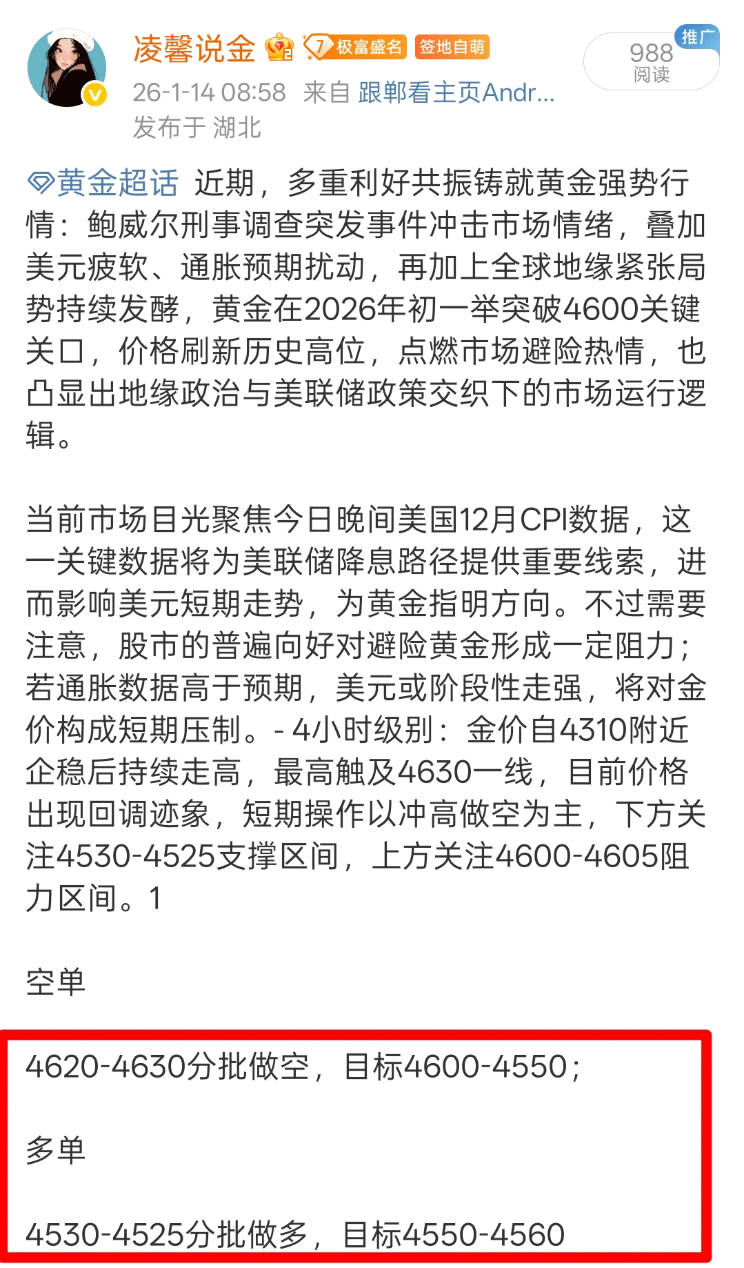 早间开门红!黄金4618高位的空,最低来到4511,早间短线小吃7点离场!