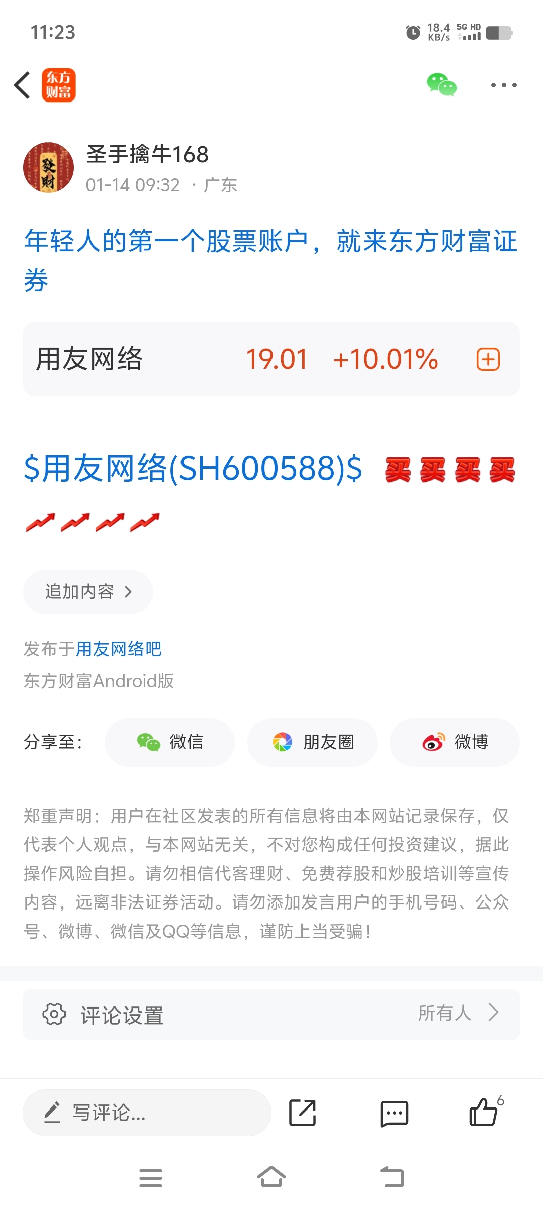 温馨提示: 1.根据《证券法》规定,禁止编造、传播虚假信息或者误导性信息,扰乱证券市场;2.用户在本社区发表的所有资料、言论等仅代表个人观点,与本网站立场无关,不对您构成任何投资建议。用户应基于自己的独立判断,自行决定证券投资并承担相应风险。《东方财富社区管理规定》