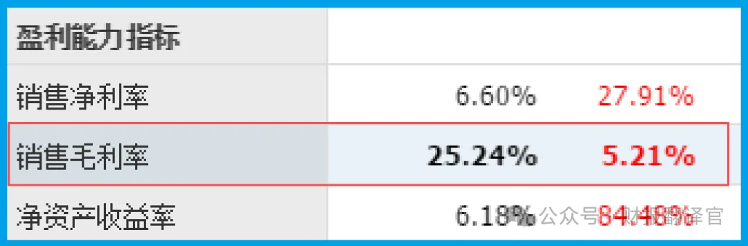 财官的放大镜移向旁边:销售毛利率25.24%,同比提升5.21个百分点。