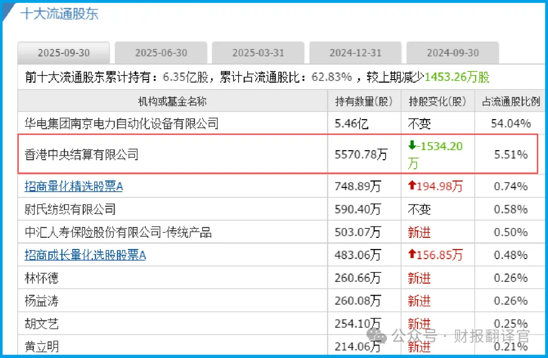 谁在关注这个奇特的现象?财官调阅了股东名册。果然,一个熟悉的名字静静躺在第二大股东的位置:香港中央结算有限公司。