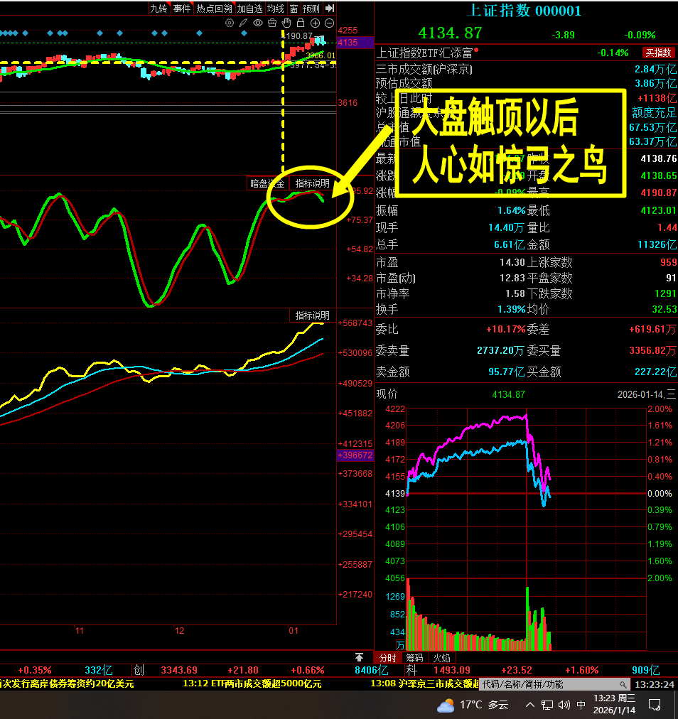 0114星期三 大盘触顶 人心如惊弓之鸟