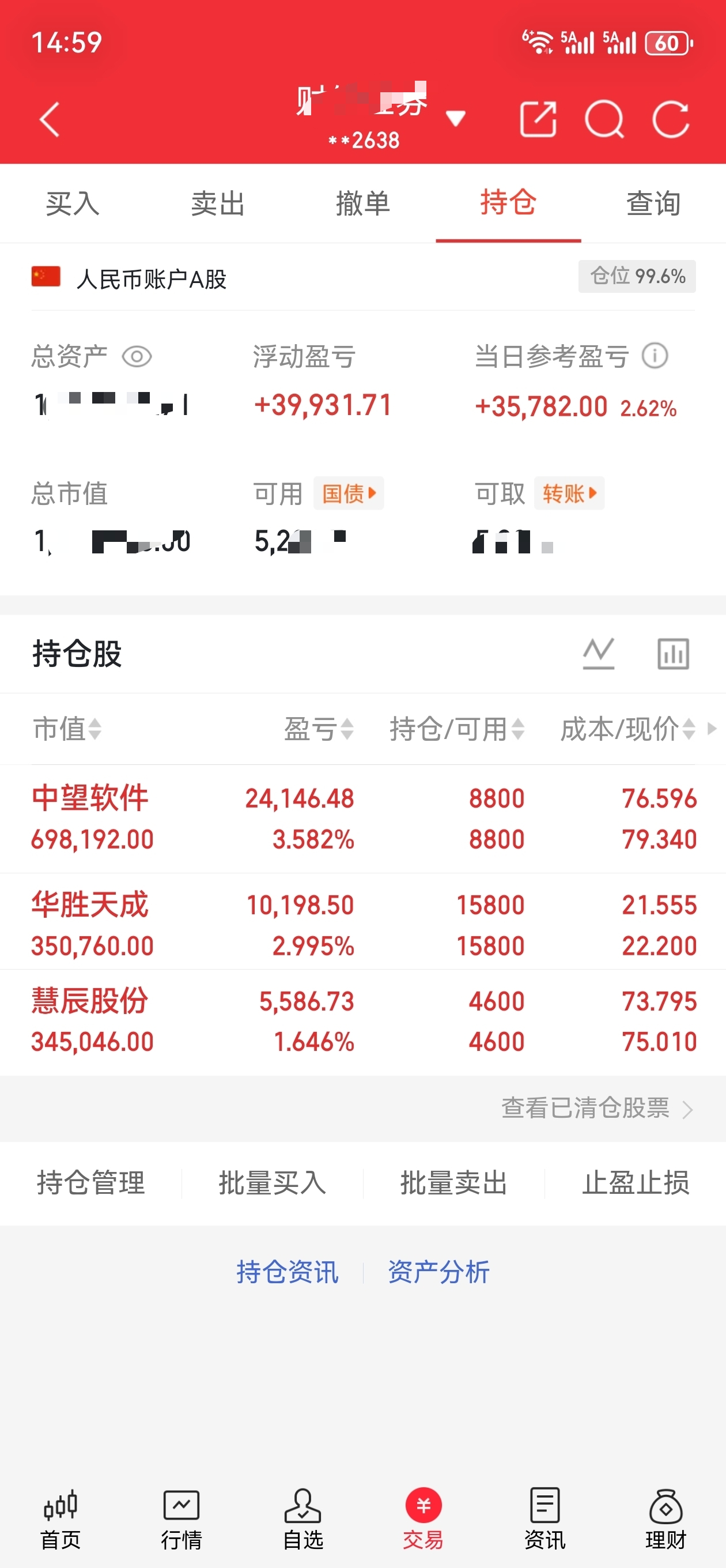 今日账户小结总资产:约139.9万当日收益:+2.62%(+3.57万)累计浮盈